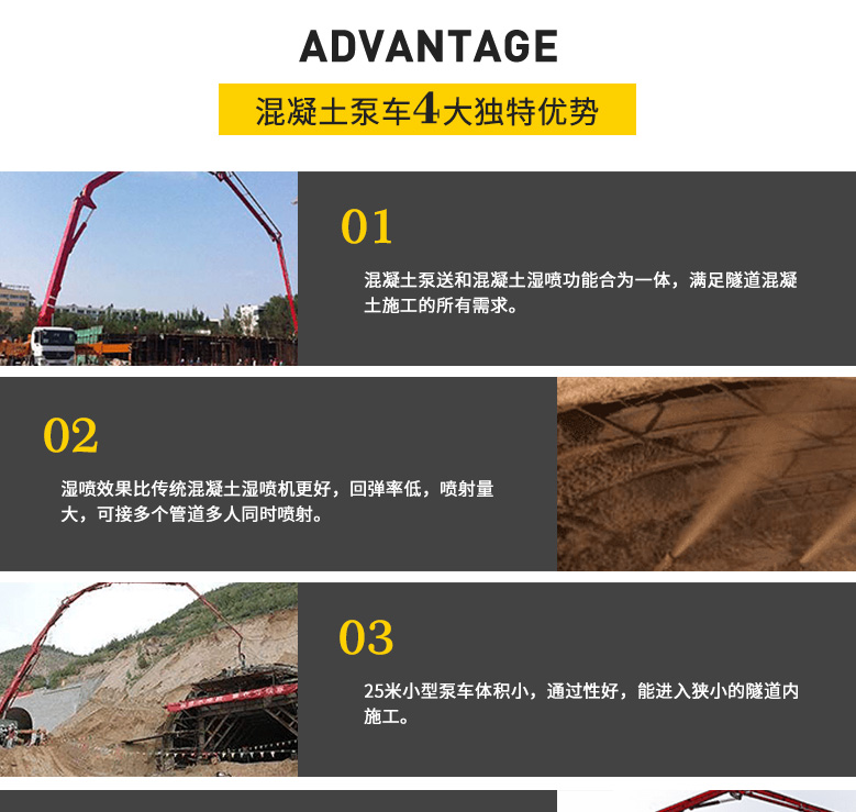 簡介:25米混凝土輸送泵車是三民重科專為隧道施工設計的一款電動防爆混凝土泵車,解決了隧道施工方面臨的“用拖泵需要布管,工作效率低;用泵車體積過大,且有尾氣不安全”的難題。