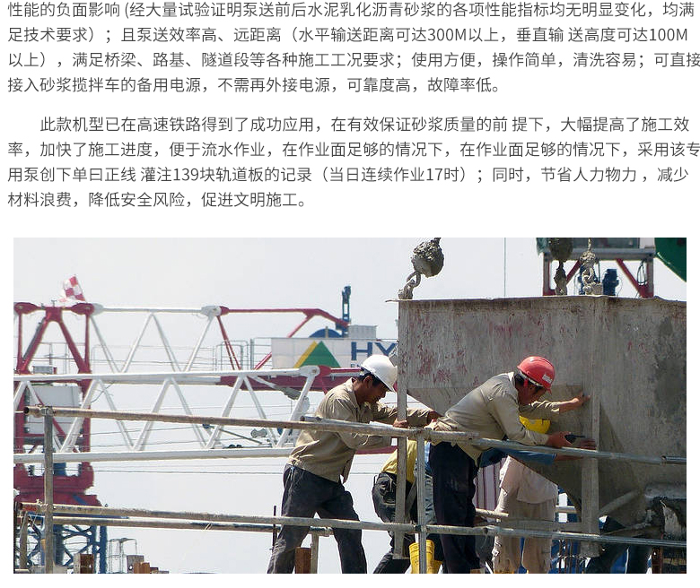 簡介:水泥乳化瀝青砂漿專用泵是三民重科根據(jù)高速鐵路板式無砟軌道水泥乳化瀝青砂漿的性能特點(diǎn)與施工要求,經(jīng)過前期廣泛論證、現(xiàn)場充分試驗(yàn)、后期不斷優(yōu)化而聯(lián)合開發(fā)的并于施工現(xiàn)場成功應(yīng)的專用泵送設(shè)備。