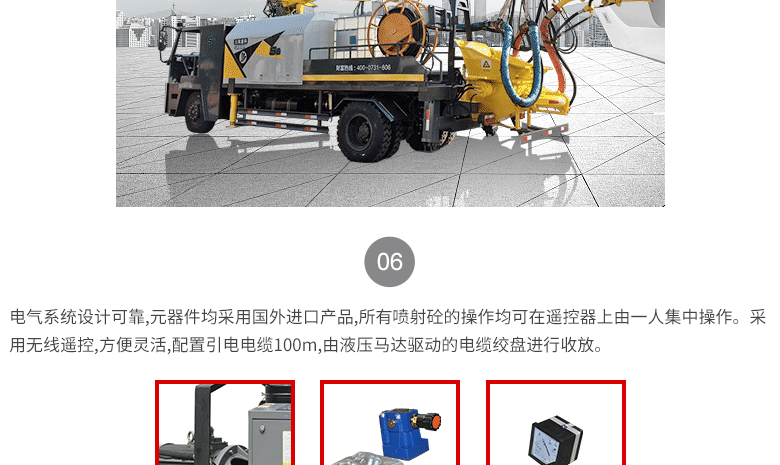 簡介:混凝土濕噴臺車是按標準濕噴機產品的要求設計、制造和配置的,屬高端的濕噴機產品,其功能多樣化,適應范圍廣。噴射能力大、作業(yè)效率高、噴射效果好、操控靈活方便、自行能力強。更加適合較大斷面和需要較大噴射砼量以及須要高效率噴射砼的隧道。