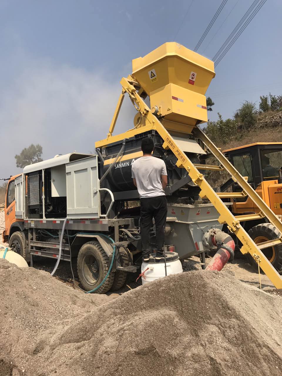 我以前在施工現(xiàn)場(chǎng)跟著承包人在工作上很辛苦,后來(lái)過一段時(shí)間后,自己組建了一個(gè)工程隊(duì),成為了承包人,知道在施工現(xiàn)場(chǎng)工作很辛苦,特別是炎熱的一天,又熱又累,很辛苦工地多的時(shí)候忙得不可開交。 朋友提議買一臺(tái)混凝土攪拌設(shè)備。 雖然花錢,但能輕松,工作也很快!后來(lái)我選擇了湖南三民重科的混凝土攪拌泵車。 這臺(tái)機(jī)器可以一邊攪拌一邊搬運(yùn)混凝土,效率也很快,更重要的是,我的工作人員工作不那么辛苦,也可以委托更多的人工作!