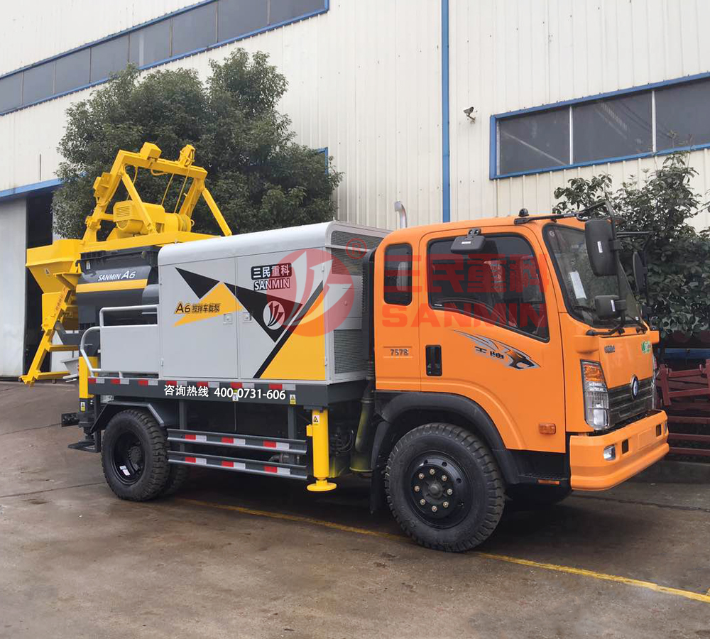 將小型混凝土泵和布料桿安裝在汽車底盤(pán)上,稱之為混凝土泵車,由主油泵的參數(shù)和布料桿長(zhǎng)度決定泵送混凝土的速度,運(yùn)送高度和水平距離。由于混凝土泵車機(jī)動(dòng)靈活,布料桿運(yùn)動(dòng)自如,適合于進(jìn)行水平和垂直方向輸送混合料,甚至跨越障礙物進(jìn)行澆筑,在新農(nóng)村建設(shè)和橋梁施工中得到廣泛應(yīng)用
