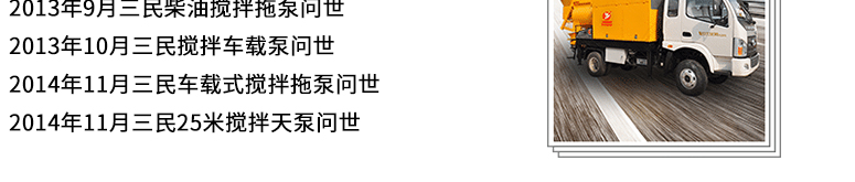 簡介:50米攪拌天泵車是三民重科研發(fā)一款新型的混凝土泵車,由強(qiáng)制攪拌機(jī)與混凝土泵車組成的,可以實現(xiàn)自動上料、攪拌、泵送為一體,真正做到了機(jī)械化施工,此泵車適用于中小型施工作業(yè),填補(bǔ)小型,野外,分散等混凝土施工的空白,采用的是強(qiáng)制式雙臥軸攪拌機(jī)。