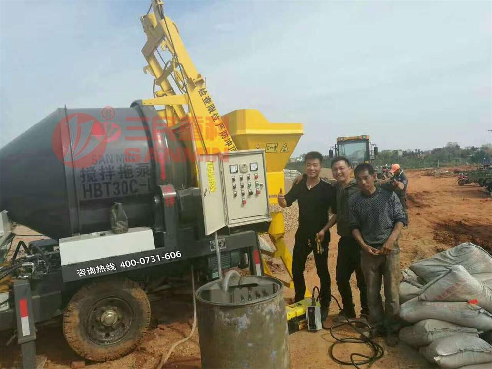 所有電機(jī)驅(qū)動(dòng)的拖泵 二、故障現(xiàn)象 啟動(dòng)自動(dòng)泵送主油缸不動(dòng)作,點(diǎn)動(dòng)主油缸兩缸只能動(dòng)一點(diǎn)就不動(dòng)了 三、故障分析與排除 根據(jù)此現(xiàn)象分析主要由以下原因造成: 1.一體化電源電壓不穩(wěn)定造成主油泵電磁鐵吸合電壓不夠,電磁閥芯打開不夠。 2.主油泵吸油濾芯堵塞,吸油不暢,此時(shí)油泵會(huì)發(fā)出異常噪音。 3.主油泵排量調(diào)節(jié)壓力油阻尼接頭的阻尼孔堵塞,控制壓力為零,造成主油泵斜盤角度為零,油泵排量為零。 4.調(diào)速減壓閥內(nèi)卸造成壓力油不能保持主泵斜盤角度穩(wěn)定在一定角度,造成主泵排量為零。 判斷以上原因,可按以下步驟排除: A、啟動(dòng)電機(jī)后,分配壓力正常,能正常點(diǎn)動(dòng)。 B、點(diǎn)動(dòng)分配及主油缸,同時(shí)檢查一體化電源的輸出電壓降24DC,一體化電源正常 C、由此可判斷故障出在液壓上,首先檢查控制油路的阻尼接頭的阻尼孔,因?yàn)榭刂朴吐肥紫仁怯珊銐罕幂敵龅椒峙溟y塊,然后在從分配閥塊經(jīng)過阻尼接頭到電磁減壓閥,然后經(jīng)過電磁減壓閥再到主泵控制斜盤工作。 D、由于阻尼孔很小孔徑為φ1,如果油質(zhì)不干凈很容易堵塞。同時(shí)檢查液壓油箱發(fā)現(xiàn)泵機(jī)的油已經(jīng)乳化嚴(yán)重,拆卸阻尼接頭發(fā)現(xiàn)有點(diǎn)小的雜質(zhì),再加上天氣寒冷的問題乳化的油一結(jié)冰就造成堵塞。 E、清洗控制油路,清洗阻尼孔,更換液壓油后故障排除。免費(fèi)咨詢熱線:400-0731-606