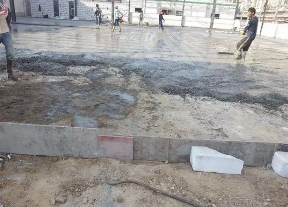 工藝流程:基層清理→彈標(biāo)高控制線→找標(biāo)高沖筋貼灰餅→鋪設(shè)混凝土并振搗→木抹子搓平→抹面層→養(yǎng)護